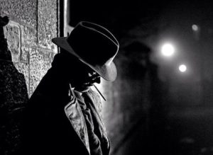 Gumshoe is an old slang term for a detective, and Gumshoeing is slang for working as a detective. Both first appeared in 1913. Shoes in the late 1800s were made of gum rubber—the soft-soled precursors of the modern sneaker. The phrase “to gumshoe” meant sneaking quietly as if wearing gumshoes.